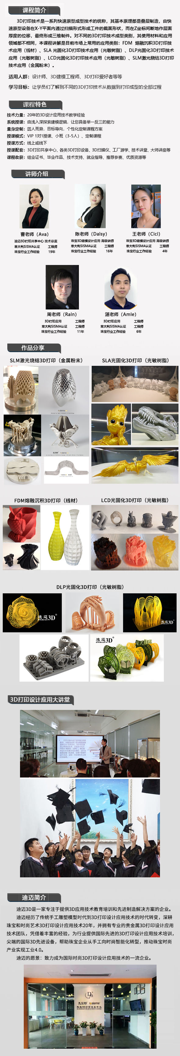 学习目标:让学员们了解到不同的3D打印技术从数据到打印成型的全部过程